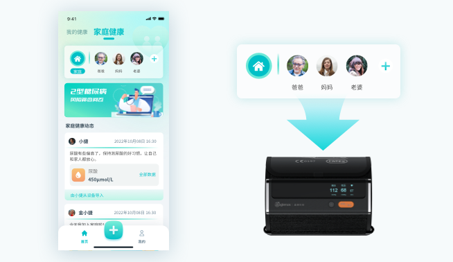 按钮,您可以切换检测人进行血压或心电的检测(家庭模块帮助请查看:帮助-什么是家庭空间?)