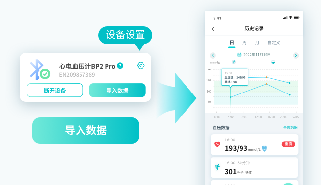 导入后,您可以查看你的日、月、周曲线,并分享、保存您的历史记录